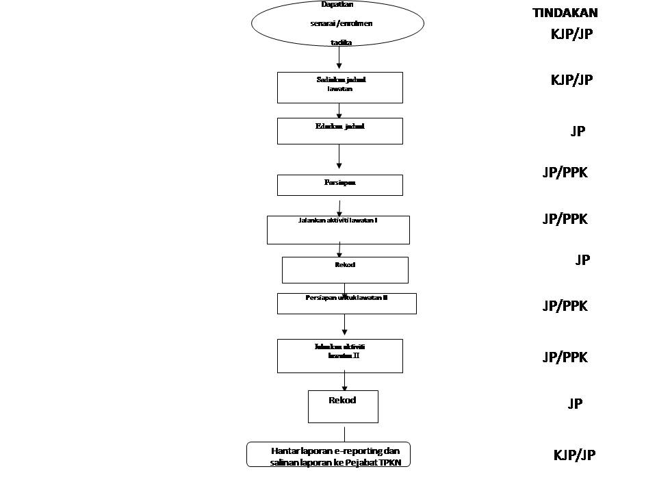 Rekod aktiviti yang telah dijalankan ke dalam borang PKP 101 : Penyata harian pendidikan dan PKP 203 : Laporan Suku Tahun bagi aktiviti lawatan ke tadika serta borang PG 301: Penyata Hasil Kerja Harian/secara online dalam sistem TPC-OHCIS