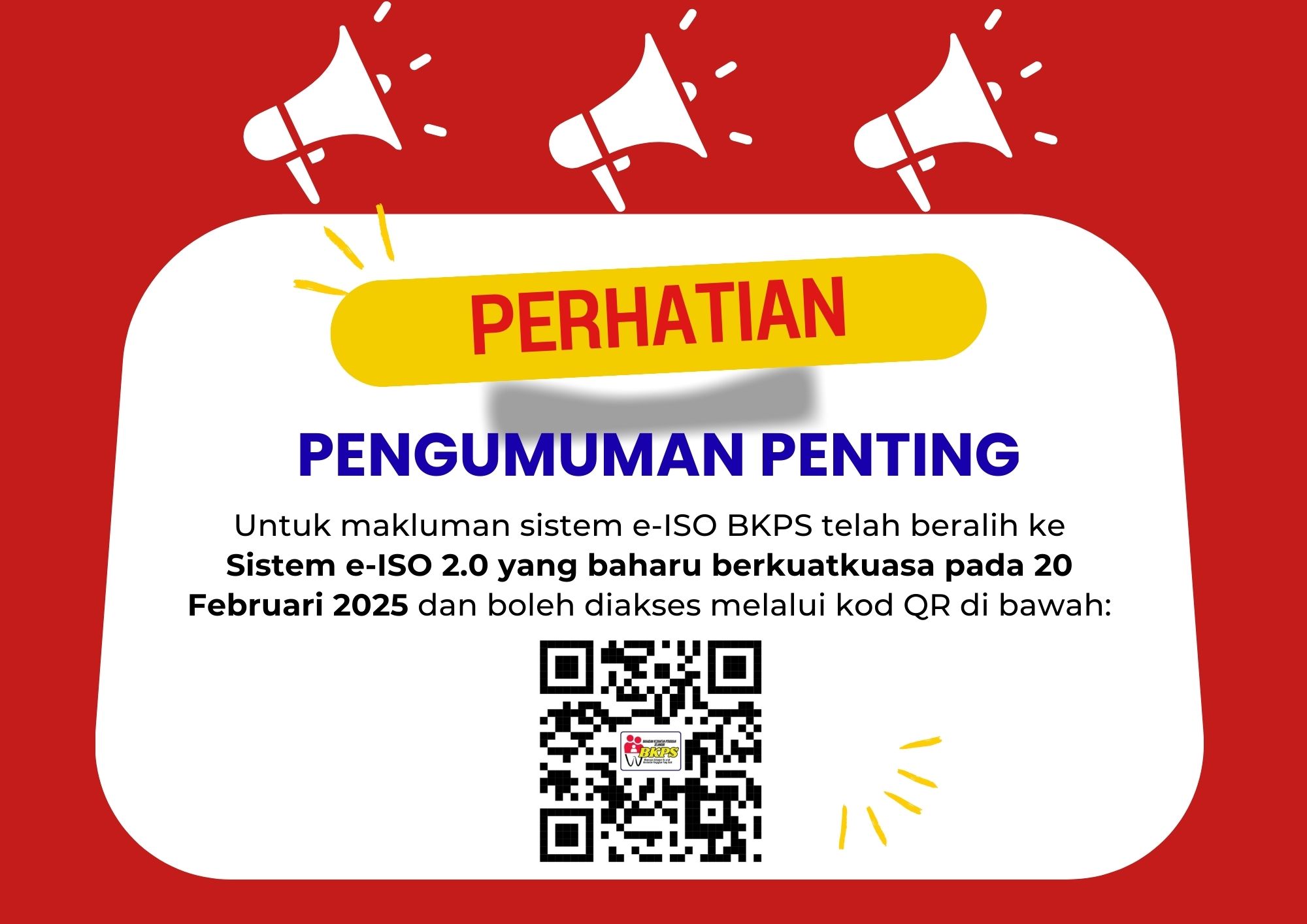 PENGUMUMAN ! MIGRASI SISTEM E-ISO BKPS KE WEBSITE BAHARU MULAI 20 FEBRUARI 2025